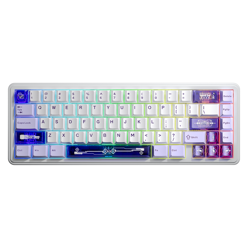 Hot-swappable PCB let you experiment with different inductive switches without soldering. Per-key RGB with 18 dynamic effects and 16 million colors adapts to your setup or mood. Advanced features like DKS, RT, TGL, and SOCD, empowering gamers and power users to fully customize their experience. Whether you’re managing complex game macros, fine-tuning real-time adjustments, or executing custom keyboard shortcuts, the King68 gives you complete control. Every keypress is precise, every color perfectly displayed, making both performance and aesthetics feel seamless.